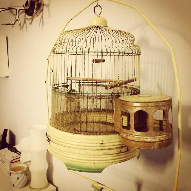 Friday’s vintage find. To be included as work. Fixated on solving how – pretty close. #installation #vintage #antique #birdcage