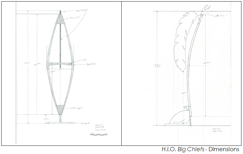 Simcoe County and the City of Barrie hold Indigenous histories rarely acknowledged. Prior to the arrival of Samuel de Champlain in 1615, the area around Kempenfelt Bay was composed of Wendat villages filled with thousands of people who used the land and waterways for hunting, fishing and trade. They shared the land and waterways with the Anishnaabe and, at times, the Haudenosaunee. Symbolic to Indigenous modes of transportation, the canoe, certainly played an important part in the lives of all nations who inhabited the area. It was in response to the erasure of these histories, that the concept for H.I.O Big Chiefs was conceived. Standing proudly overlooking Kempenfelt Bay and much of Barrie, three “Big Chiefs” pay tribute to the First Nations that shaped the landscapes around so-called Simcoe County. They continue to do so today.